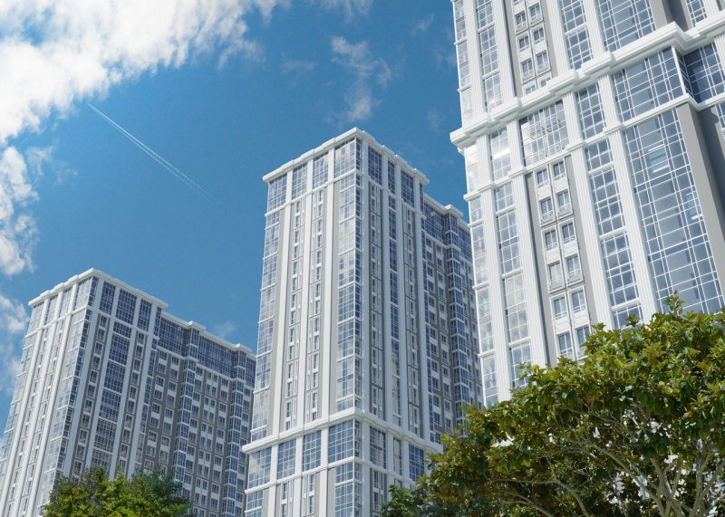 Всего запроектировано 1574 квартиры с различной площадью и количеством комнат, все они передаются покупателям без отделки. Жилье будет иметь высокие потолки от 3 до 3,5 м и крупноформатные панорамные окна высотой 2-2,5 м, шириной до 2,3 метра. Подоконники расположатся в 70 см от пола. Высокие потолки в сочетании с большими окнами визуально увеличивают пространство и наполняют его воздухом. Имеются квартиры с остекленными балконами и с возможностью устройства двух санузлов.